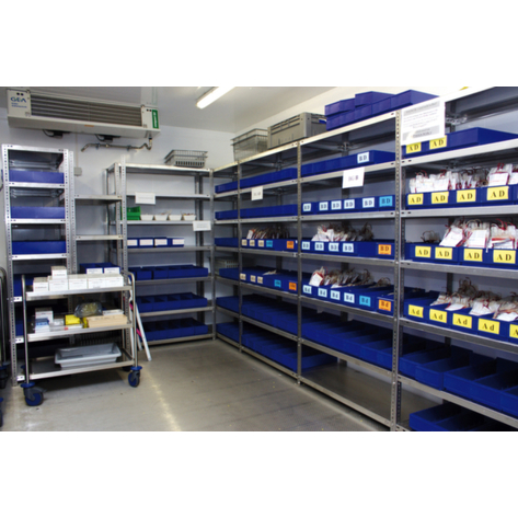 Die vier stabilen Edelstahlböden haben eine individuelle Fachlast von bis zu 200 kg, und die gesamte Feldlast beträgt 800 kg. Flexibilität wird durch das höhenverstellbare Raster von 25 mm geboten, was die Anpassung an verschiedene Lagerbedürfnisse einfach gestaltet. Zudem ist das Regal beidseitig nutzbar, was zusätzlichen Stauraum schafft.