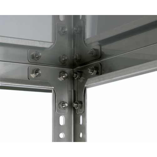 Dank des durchdachten Schraubsystems ist das Regal äußerst stabil und langlebig. Die spezielle C-förmige Längskanal-Konstruktion mit dreifacher Abkantung sorgt für zusätzliche Sicherheit und minimiert Verletzungsrisiken. Bei der Anlieferung kommt das Regal zerlegt zu Ihnen, was den Transport erleichtert. Die Montage gestaltet sich zudem einfach, wobei die Winkelpfosten mit angewinkelter Fußplatte sicher am Boden verschraubt werden können.