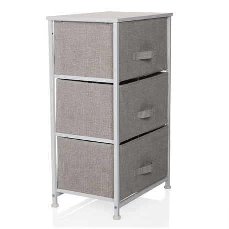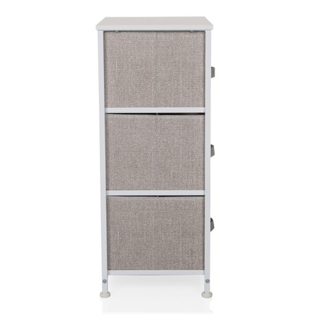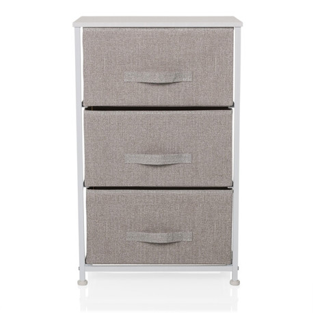 Dank des reißfesten und formstabilen Vliesmaterials der Schubladen bleiben diese auch bei häufiger Nutzung stets in Form. Das robuste Gestell aus pulverbeschichtetem Stahl gewährleistet eine hohe Langlebigkeit, während die höhenverstellbaren Kunststofffüße ideale Stabilität auch auf unebenen Böden bieten. Eine clevere Konstruktion mit einem Metallstopper an der Rückseite verhindert zudem, dass die Schubladen ungewollt herausfallen. Die obere Ablage aus laminiertem Holz ist nicht nur pflegeleicht, sondern bietet zudem zusätzliche Fläche für Ihre Gegenstände.
