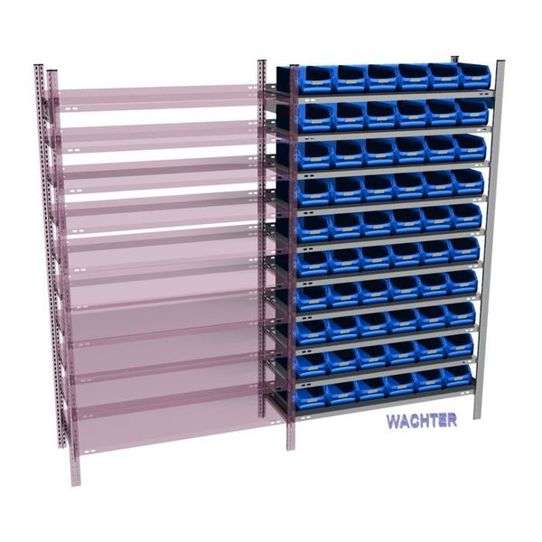 Produktinformationen "Fachbodenregal mit 60 blauen Sichtlagerkästen - 300 mm tief"