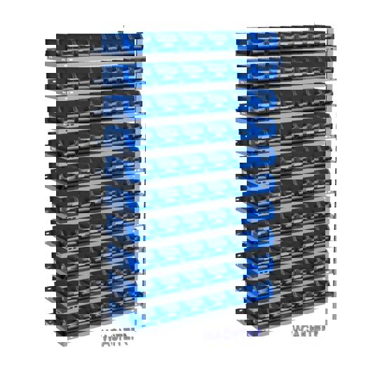 Die blauen Sichtlagerkästen verfügen über Grippnoppen im Boden, die das Handling von Kleinteilen erheblich erleichtern. Sie sind aus strapazierfähigem Polypropylen gefertigt, das für seine Langlebigkeit bekannt ist. Auch in puncto Design überzeugt das Regal mit einem klaren, funktionalen Look, der in jeder Umgebung eine gute Figur macht.
