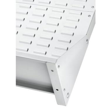 Das einseitig nutzbare Grundfeld ist mit einer stabilen Rückwand versehen, die mit Schlitzplatten ausgestattet ist und ein einfaches Ein- und Aushängen der Kästen ermöglicht. Die robuste Stahlkonstruktion sorgt für höchste Stabilität, während die strapazierfähige Kunststoffbeschichtung in lichtgrau (RAL7035) nicht nur modern aussieht, sondern auch lange Haltbarkeit verspricht.