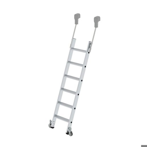 Die stabilen Rechteckrohr-Holme und die geriffelten Stufen sorgen für eine rutschsichere Nutzung, während die selbstarretierenden Federrollen am unteren Ende der Leiter eine einfache Handhabung ermöglichen. Die innovative Konstruktion mit einem laufruhigen Fahrwerk am oberen Ende erleichtert das Verschieben der Leiter, sodass Sie stets einen direkten Zugang zu Ihren Regalen haben.