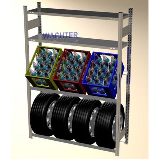 Produktinformationen "Getränkekisten- & Reifenregal mit 2 Fachböden - Ideal für Reifenservice"