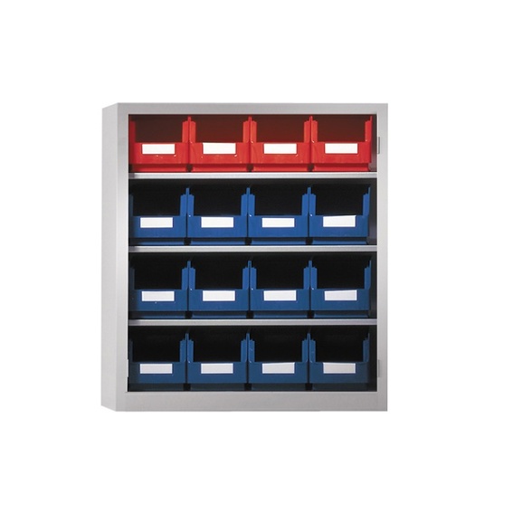 Produktinformationen "Ordnungsregal mit 3 Fachböden & 16 Sichtlagerkästen – ohne Türe | Modell KB8714"