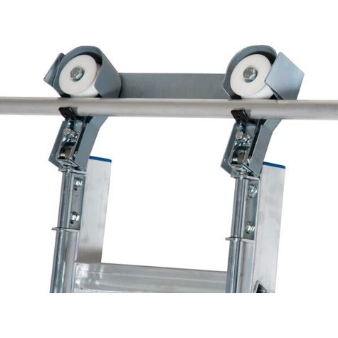 Dank der zwei Federrollen mit einem Durchmesser von 80 mm lässt sich die Leiter mühelos und flexibel bewegen. In Kombination mit den stabilen Zweikomponenten-Fußstopfen sorgt dies für einen sicheren Stand während der Benutzung. Mit einer Leiterneigung von 21 ° kann die Leiter in der Parkposition senkrecht am Regal abgestellt werden, was Platz spart.