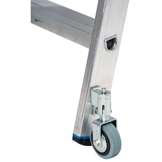 Die Leiter ist mit zwei Federrollen ausgestattet, die ein müheloses Verfahren ermöglichen. Diese in Kombination mit den Zweikomponenten-Fußstopfen garantieren während der Benutzung Stabilität und Sicherheit. Mit einer Neigung von 21° lässt sich die Leiter in der Parkposition platzsparend senkrecht am Regal abstellen, was Ihnen zusätzlichen Raum bietet.