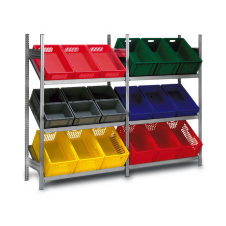 Schrägbodenregal Anbaufeld 2000x1006x500mm - Feldlast 300kg, 3x Schrägboden, einseitig, verzinkte Ständer & Ebenen