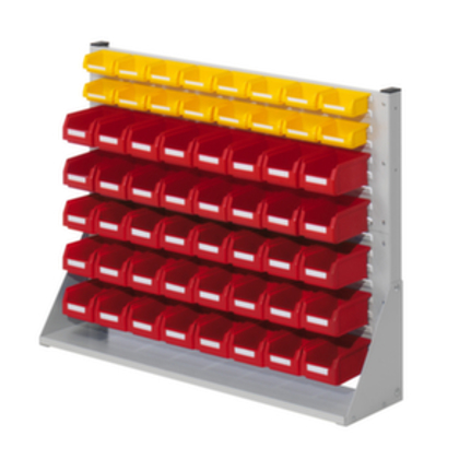 Produktinformationen "Sichtlagerkastenregal 760x1000x240mm - 56 PE Kästen - einseitig - Ständer RAL7035"