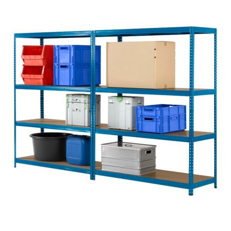 Die stabilen 10 mm Spanplattenböden lassen sich im 35 mm Raster verstellen, sodass Sie Ihre Ablageflächen individuell anpassen können. Zudem ist das Regal in einem modernen Blau gehalten und fügt sich nahtlos in jede Umgebung ein. Mit einer Fachlast von bis zu 350 kg und einer Feldlast von 1800 kg sorgt es für die nötige Sicherheit bei der Lagerung Ihrer Produkte. Dieses Regal ist der perfekte Partner für Ihre Aufbewahrungsbedürfnisse und bietet Ihnen die Möglichkeit, zusätzliche Böden zu integrieren, solange die maximale Feldlast eingehalten wird.