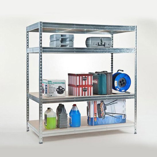 Dieses vielseitige und robuste Weitspannregal zeichnet sich durch seine beeindruckende Tragfähigkeit und die einfache Montage aus. Mit einer Gesamtladekapazität von bis zu 1200 kg und vier stabilen Spanplattenböden, die jeweils Lasten bis zu 300 kg standhalten, ist es ideal für die Aufbewahrung von schweren und breiten Lasten geeignet. Die großzügigen Abmessungen von 200 x 180 x 60 cm ermöglichen es Ihnen, auch längere und voluminöse Gegenstände mühelos zu lagern.